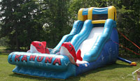 Our Combination, bounce, obstacle course, and slide, The Wizards Obstacle, Giant Big Kahuna Slide a 17' tall fun machine. Lets not forget the 15 x 15 bounce house!, A face painter, balloon artist, popcorn machine, cotton candy machine. And complete staff to make it all seem effortless!